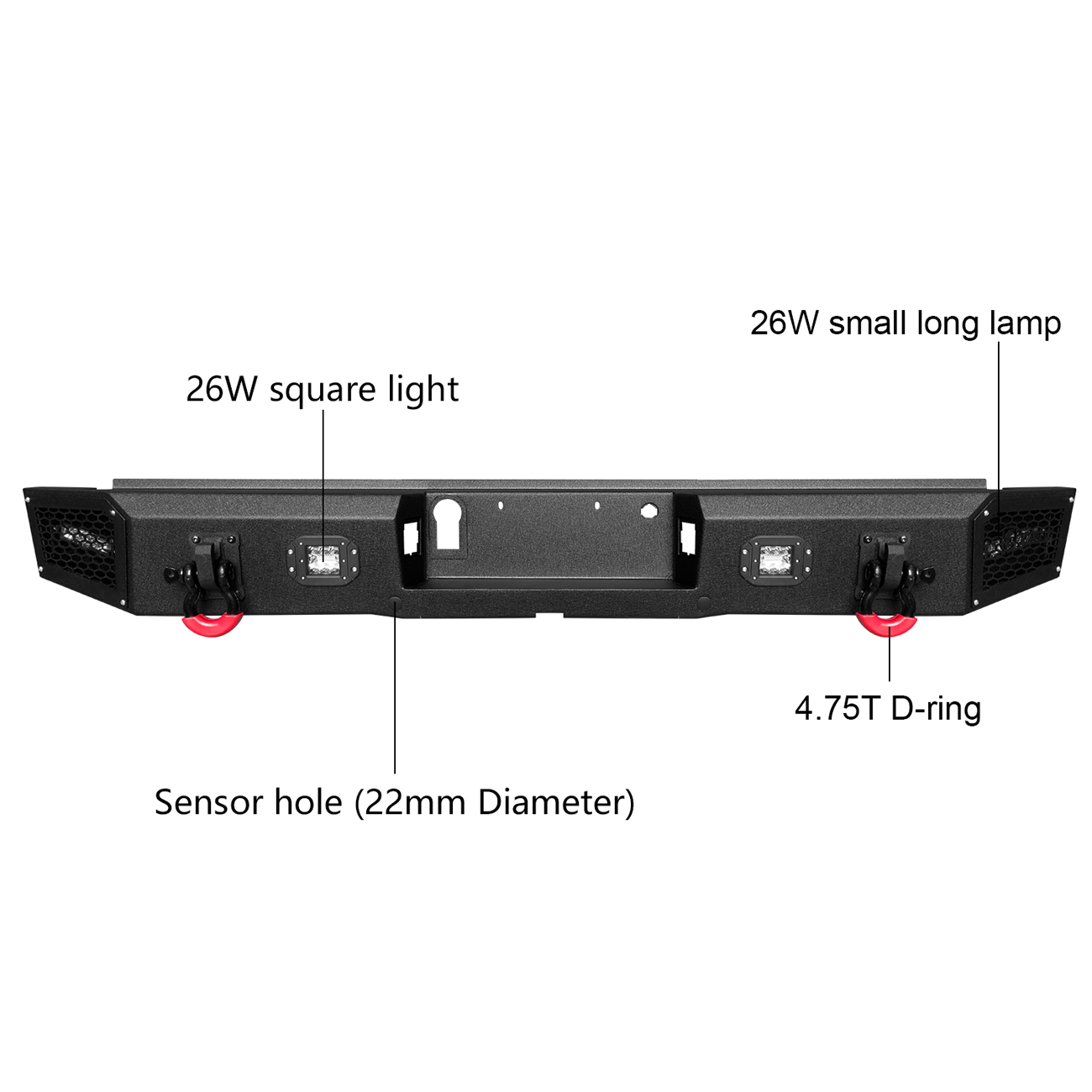 [Product Note]: The bumper does not include the wiring harness to connect the lights, the sensor hole does not support the original sensor, and the sensor needs to be purchased separately