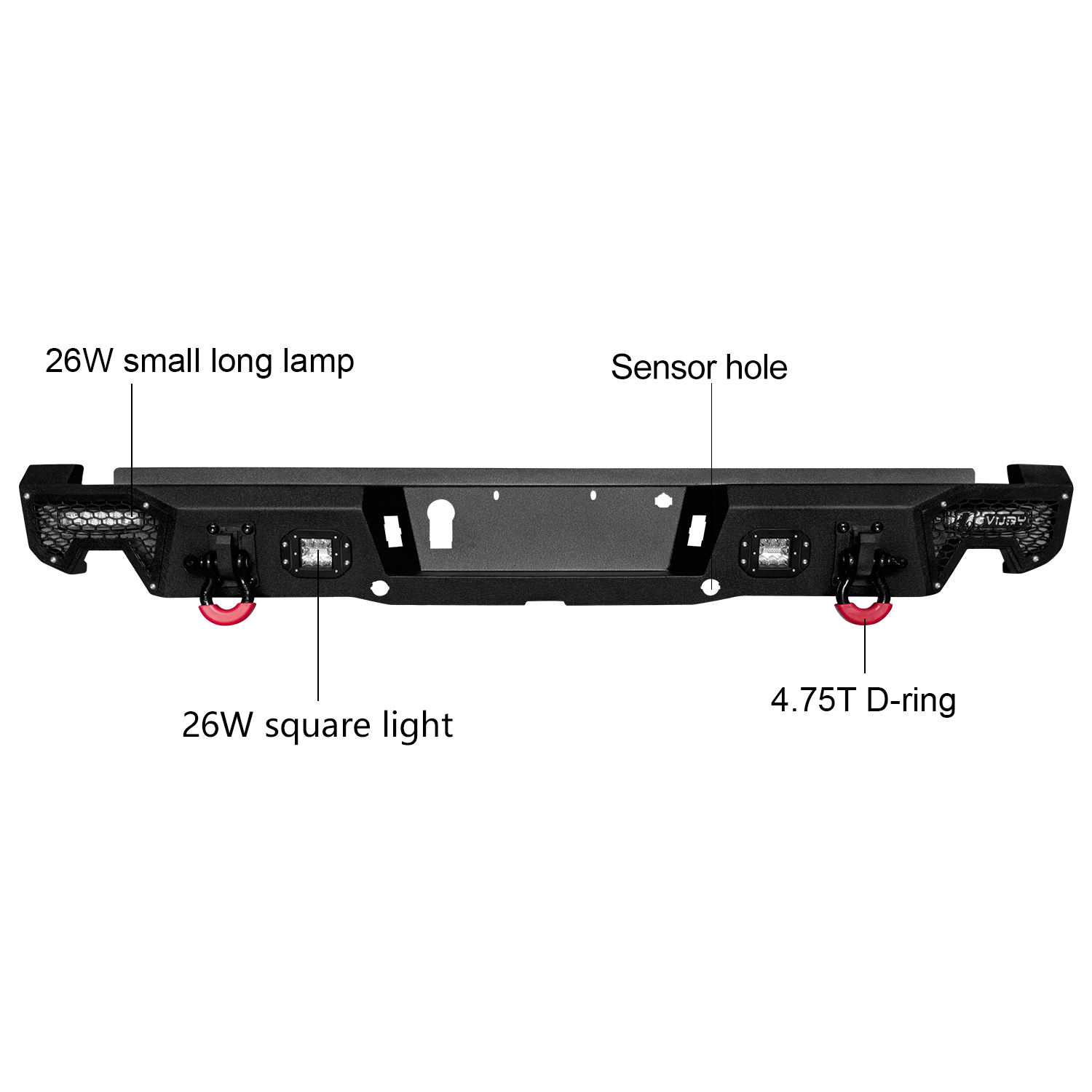 [Comprehensive Protection]: The rear bumper is a one-piece structure that perfectly fits the body lines. Rugged off-road styling enhances the vehicle’s overall aesthetic, giving it a tough and aggressive look