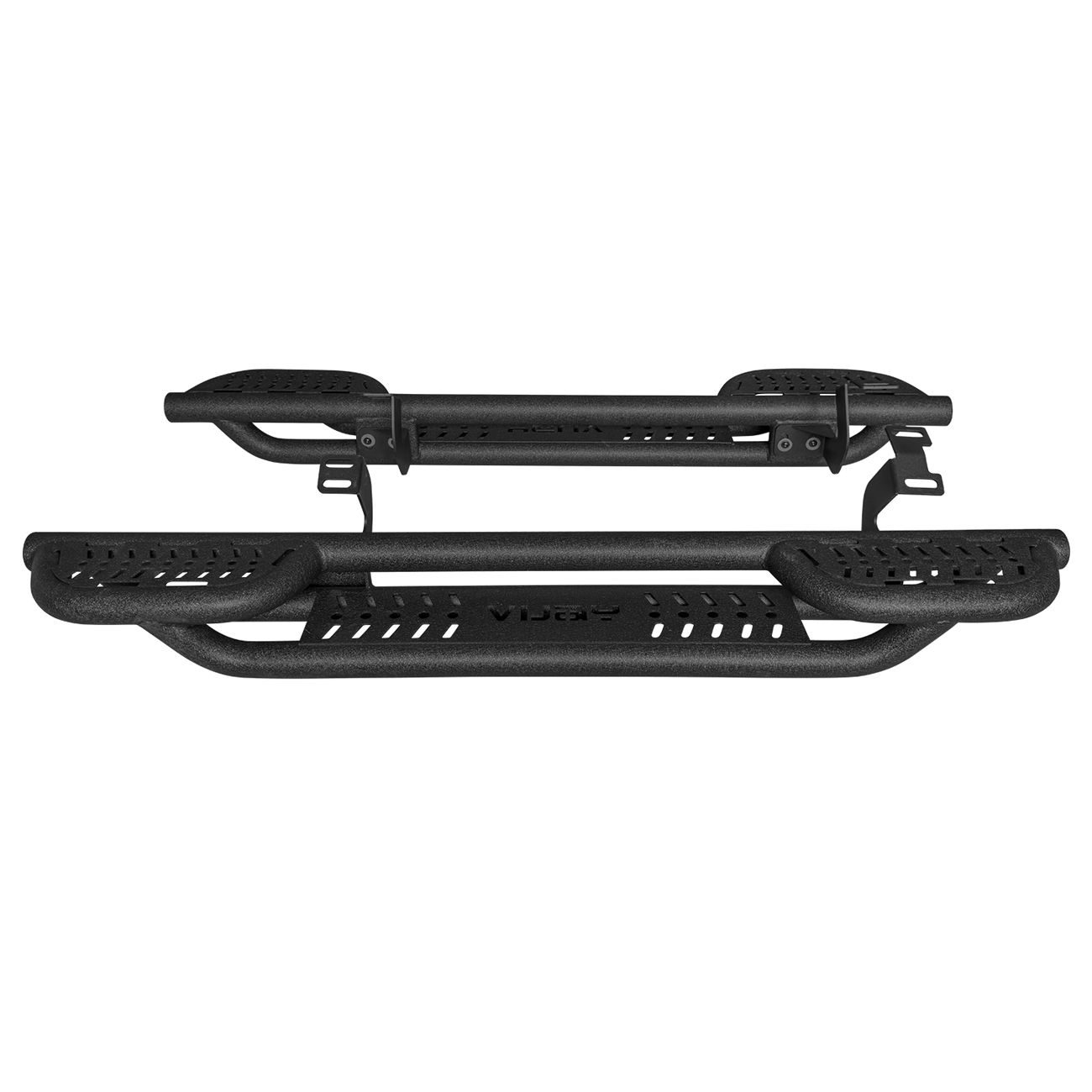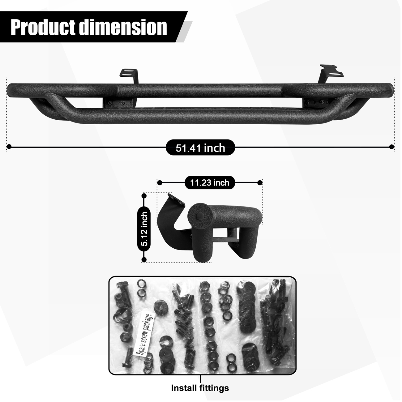 [Design Effect]: Excellent side and chassis protection. Step rails are equipped with durable non-slip step pads for easy entry and exit of your truck. Each step can support up to 350 pounds