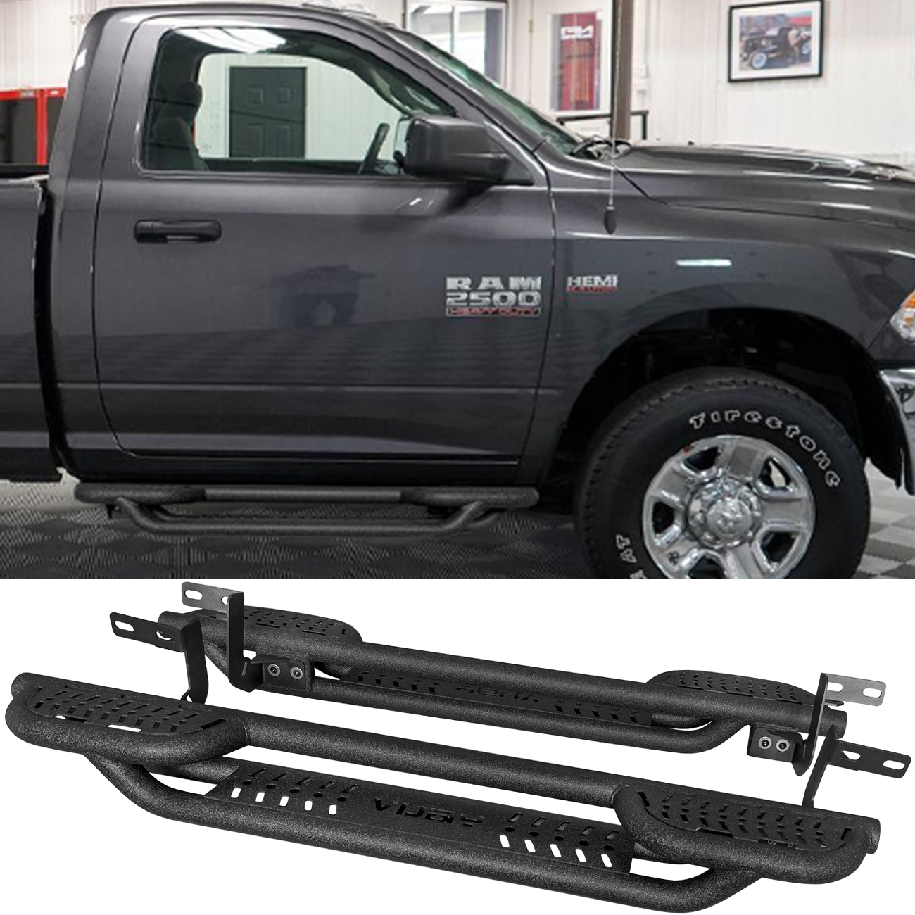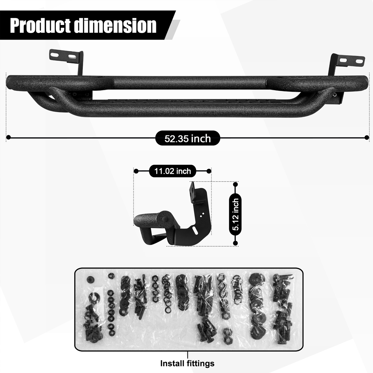 [Design Effect]: Excellent side and chassis protection. Step rails are equipped with durable non-slip step pads for easy entry and exit of your truck. Each step can support up to 350 pounds