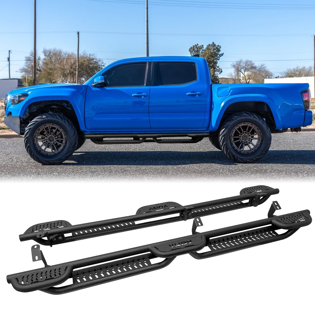 [Design Effect]: Excellent side and chassis protection. Step rails are equipped with durable non-slip step pads for easy entry and exit of your truck. Each step can support up to 350 pounds