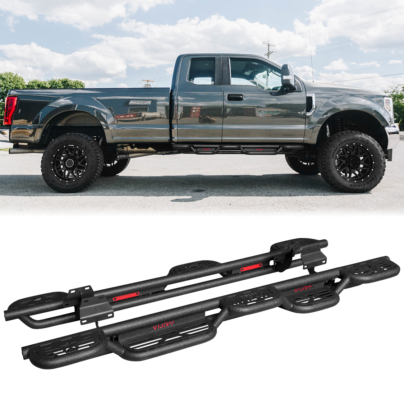 [Design Effect]: Excellent side and chassis protection. Step rails are equipped with durable non-slip step pads for easy entry and exit of your truck. Each step can support up to 350 pounds
