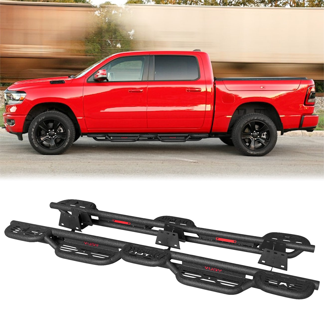 [Design Effect]: Excellent side and chassis protection. Step rails are equipped with durable non-slip step pads for easy entry and exit of your truck. Each step can support up to 350 pounds