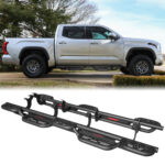 [Design Effect]: Excellent side and chassis protection. Step rails are equipped with durable non-slip step pads for easy entry and exit of your truck. Each step can support up to 350 pounds