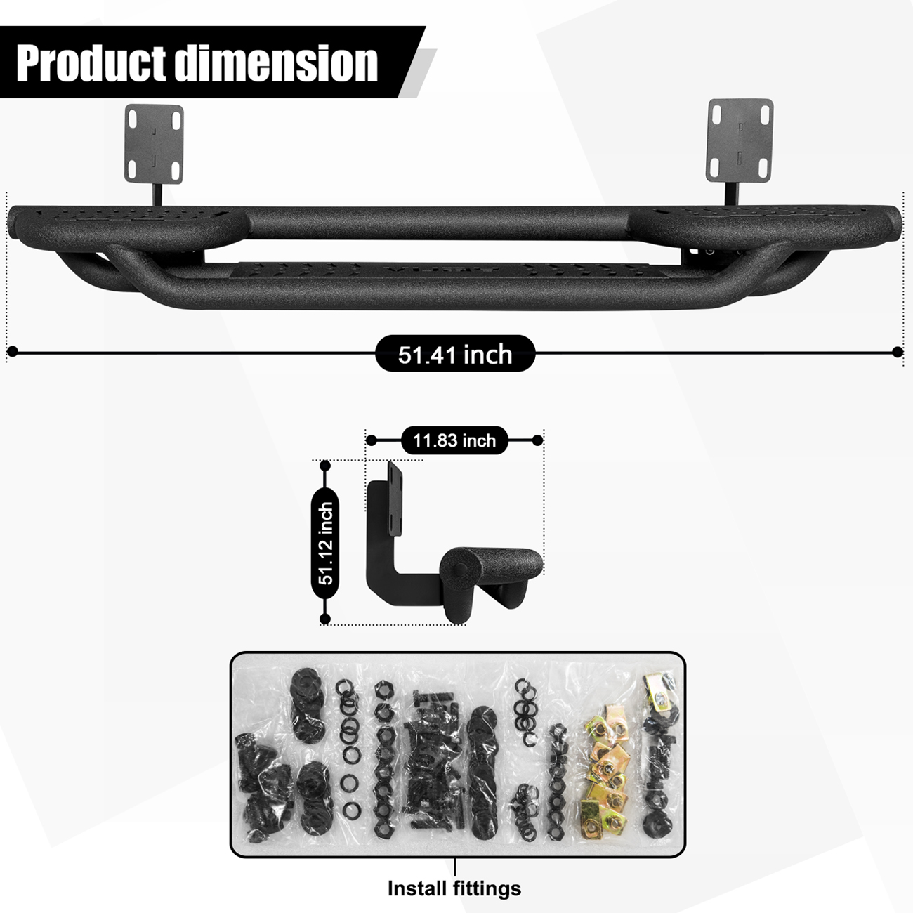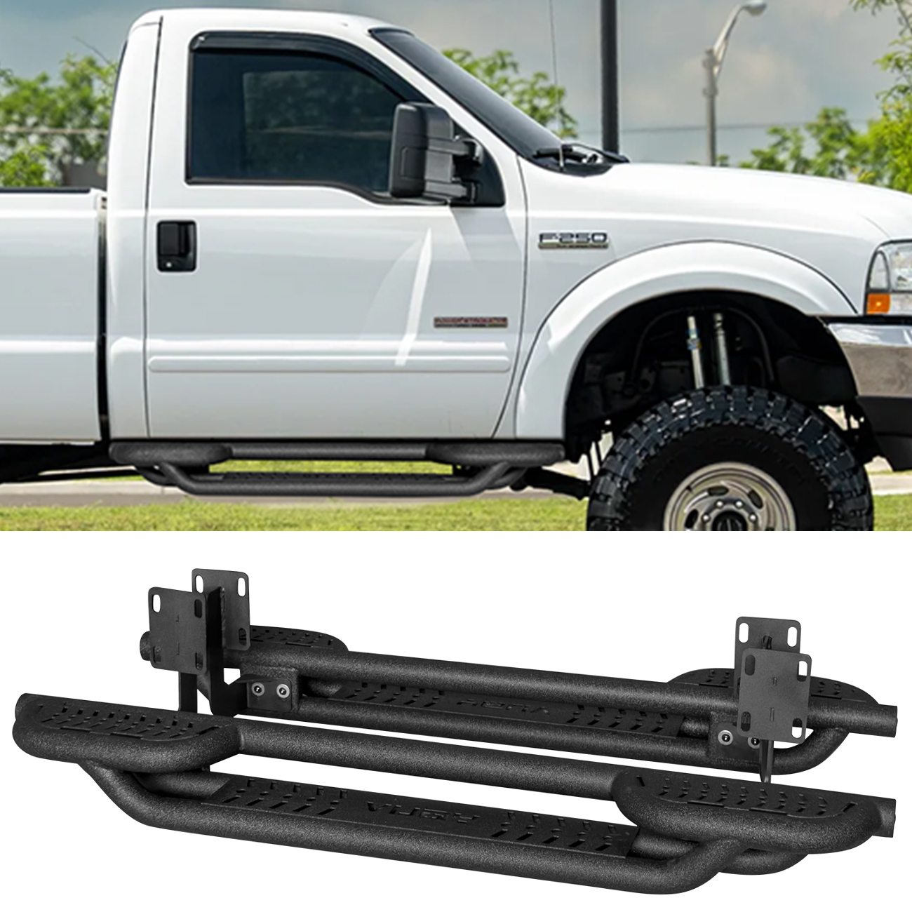 [Design Effect]: Excellent side and chassis protection. Step rails are equipped with durable non-slip step pads for easy entry and exit of your truck. Each step can support up to 350 pounds
